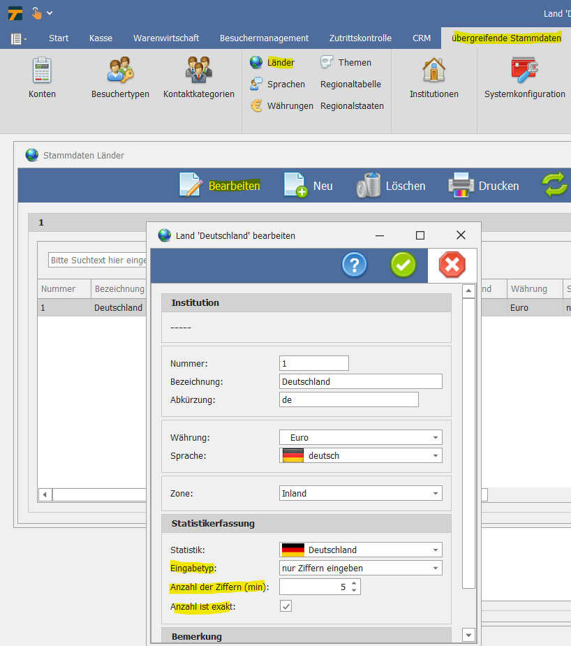 Zusätzlich muss unter übergreifende Stammdaten -> Länder das Land korrekt konfiguriert sein, z.B. für Deutschland: