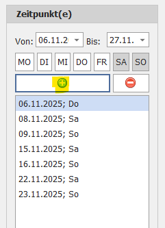 Sie können hier also einzelne Termine entfernen oder den Vorgang mit weiteren Datumsbereichen wiederholen.