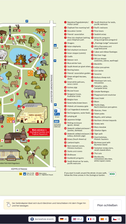 Ist für eine ausgewählte Sprache (z. B. Englisch) kein eigener Lageplan vorhanden, wird automatisch der deutsche Plan angezeigt.