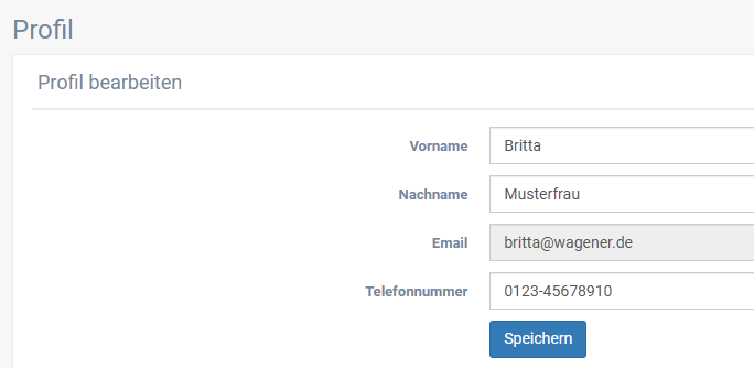 Im System besteht die Möglichkeit, Vorname, Nachname und Handynummer eines Benutzers einzugeben.