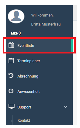 Auf der Seite Eventliste findet der Benutzer alle Termine, die für Führungen vorgesehen sind.
