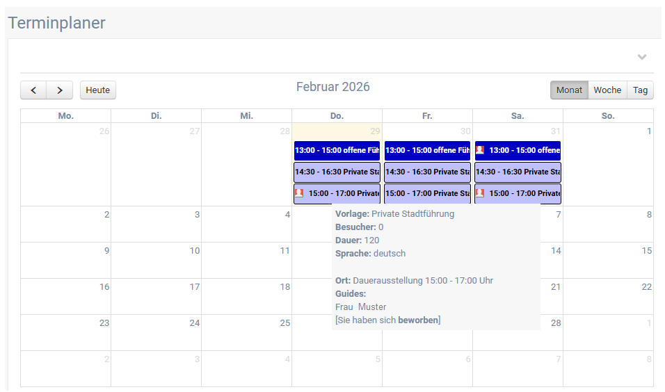 Im Terminplaner erhält der Benutzer eine Übersicht über alle Veranstaltungen, die stattfinden.