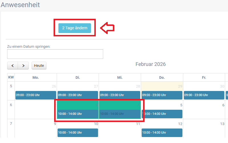 Klicken Sie auf die Tage, deren Anwesenheit Sie ändern möchten.-