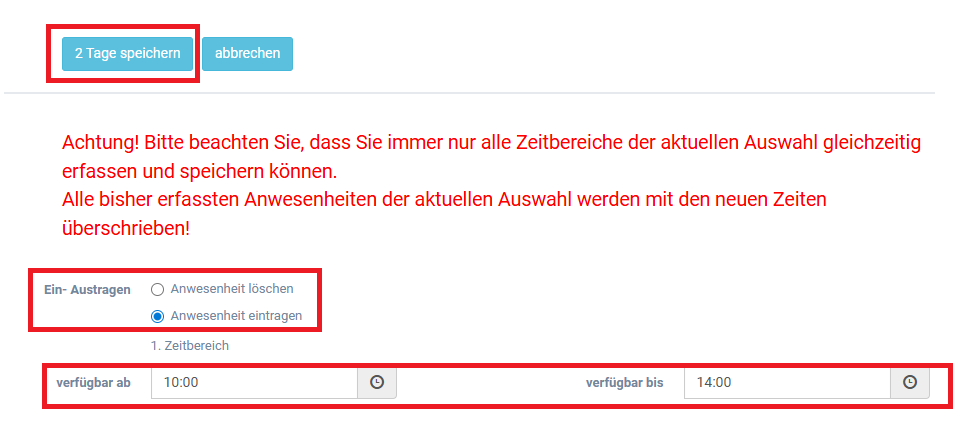Diese Funktion ermöglicht es, mehrere Tage gleichzeitig zu ändern, wodurch Zeit gespart wird und die Übersichtlichkeit im Kalender erhalten bleibt.