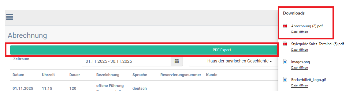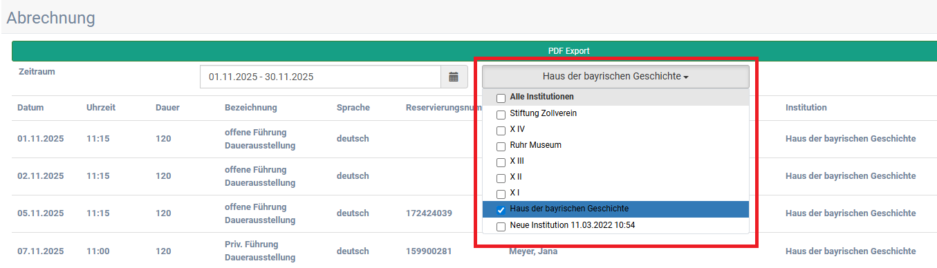 Das PDF enthält alle durchgeführten Führungen innerhalb des angegebenen Zeitraums.