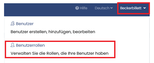 Navigation "Organisationsname" anklicken, anschließen auf Benutzerrollen