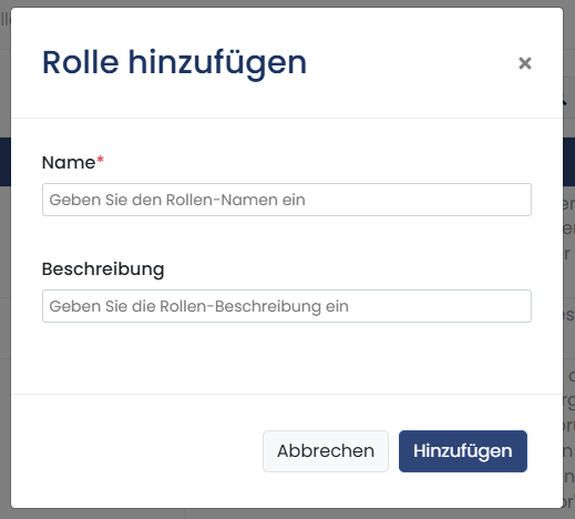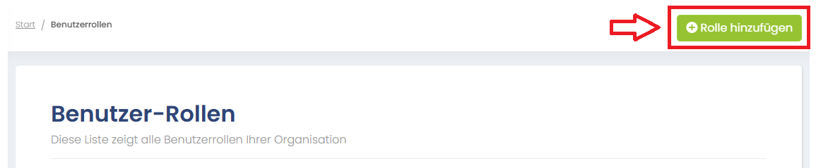 Auf der Startseite der Benutzerrollen besteht die Möglichkeit, eine neue Rolle anzulegen.
