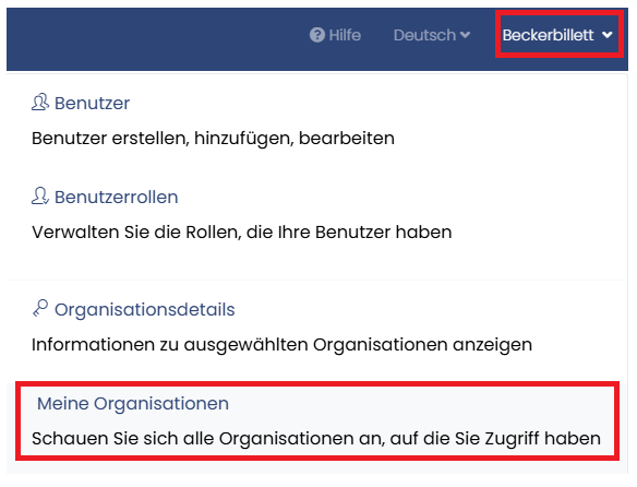 - Klicken Sie auf den Organisationsnamen (im Beispiel: Beckerbillett).