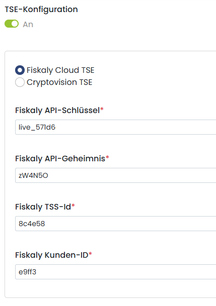Wird die TSE-Konfiguration auf inaktiv gesetzt, werden alle TSE-Einstellungen dauerhaft gelöscht.