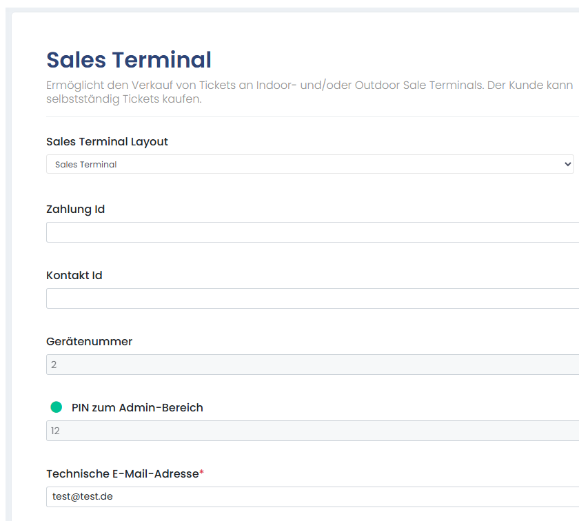 Die PIN wird benötigt, um den Admin-Bereich am Sales Terminal zu öffnen. -