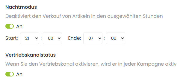In der Übersicht der Sales Terminals kann ein Nachtmodus eingestellt werden.