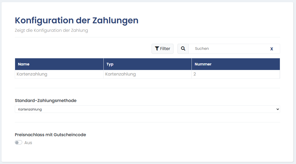 Der Benutzer findet diese unter dem Punkt „Konfiguration der Zahlungen“.