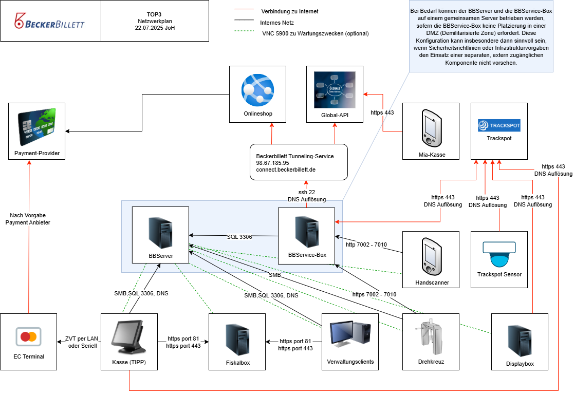 - Die Verbindung erlaubt keinen direkten Zugriff auf das Betriebssystem der Servicebox oder andere interne Dienste.